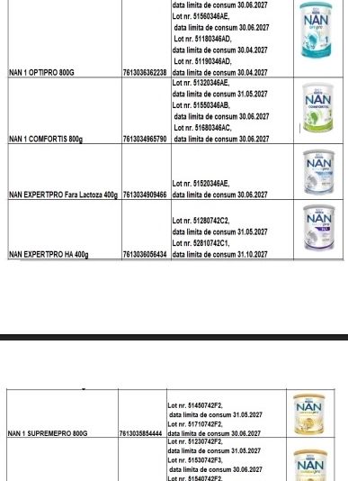 Reprezentanții Nestlé precizează că până în prezent nu au fost raportate cazuri confirmate de probleme de sănătate asociate consumului produselor din loturile respective.