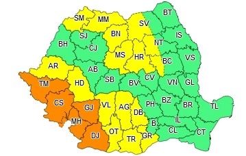 În intervalul menționat în Banat și vestul Olteniei vor fi perioade cu instabilitate atmosferică accentuată. Aceasta se va manifesta prin intensificări ale vântului (rafale de 70...90 km/h și izolat de peste 100 km/h), vijelii puternice, grindină de medii și posibil mari dimensiuni, frecvente descărcări electrice și averse torențiale (în intervale scurte de timp, de 1 până la 3 ore, cantitățile de apă vor fi de 30...40 l/mp și izolat peste 50...60 l/mp).