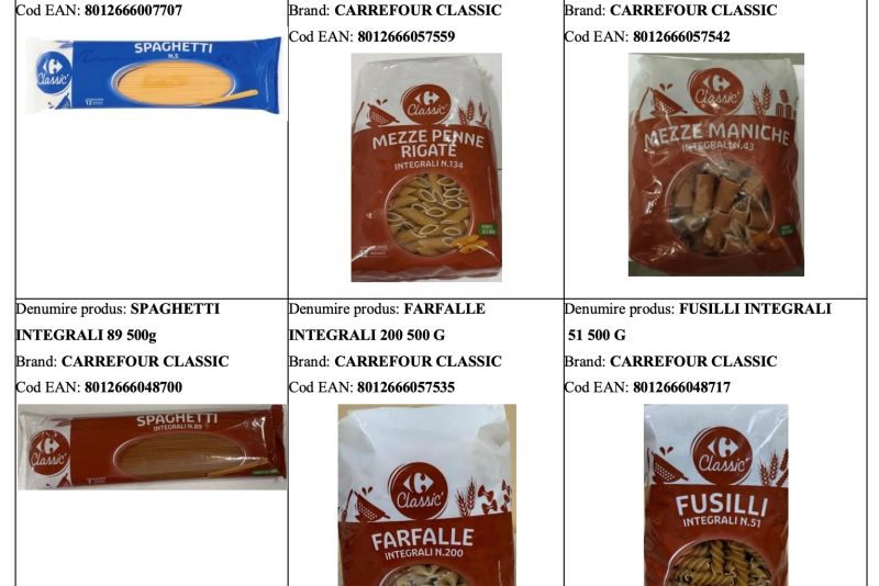 Carrefour a început o amplă campanie de retragere și rechemare de la consumatori a 12 sortimente de paste alimentare marca Carrefour Classic, fabricate de Ghigi 1870 S.p.A., indiferent de lot sau termen de valabilitate. Măsura a fost luată după ce s-a constatat că produsele nu aveau menționat pe etichetă posibilul conținut de muștar, un important alergen care poate provoca reacții severe persoanelor sensibile.