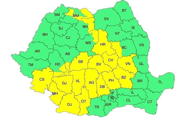 ATENȚIONARE METEOROLOGICĂ - COD GALBEN