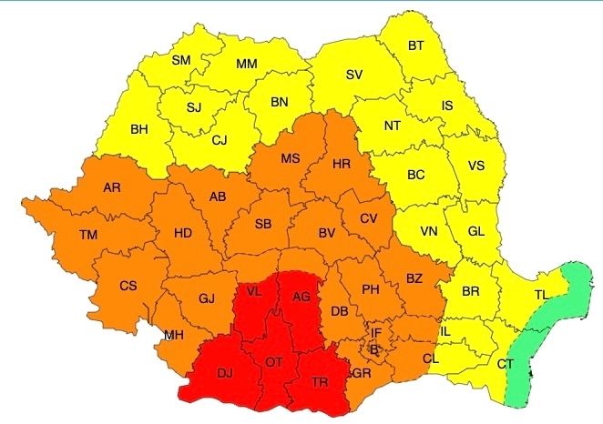În județele Dolj, Olt, Teleorman și sudul județelor Vâlcea și Argeș, valul de căldură va fi intens și persistent, iar temperaturile vor fi deosebit de ridicate, pentru a patra zi consecutiv. Temperaturile maxime vor fi de 38...39 de grade, iar cele minie, se vor situa în jurul a 20 de grade (nopți tropicale). Va fi caniculă și disconfort termic deosebit de accentuat, iar indicele temperatură-umezeală (ITU) va depăși pragul critic de 80 de unități.
