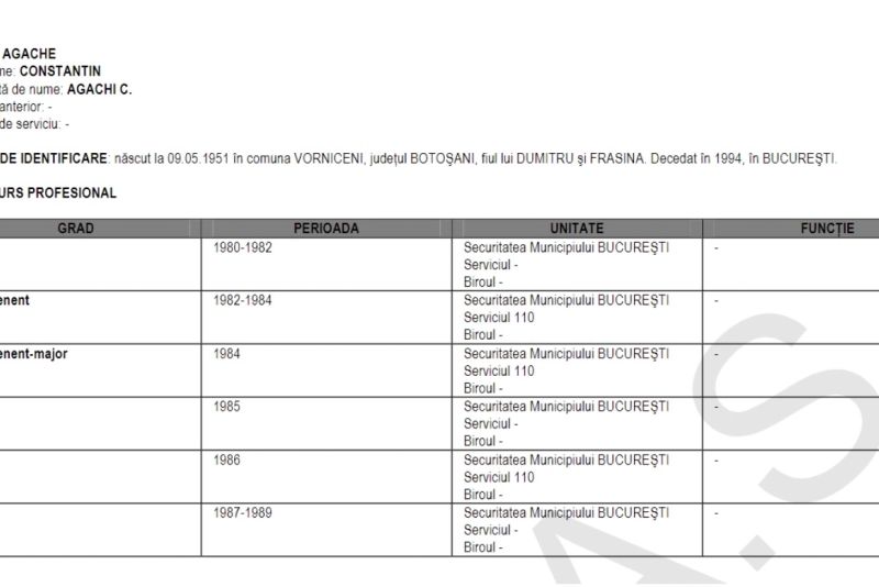 Despre ofițerul de Securitate Constantin Agache există dovezi că a existat și a lucrat exact unde scrie în document, la Securitatea municipiului București, în acea perioadă, el decedînd în 1994.