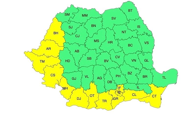 Vor fi averse pe arii extinse în vestul, nordul și centrul țării și local în rest. Se vor semnala și descărcări electrice, iar în intervale scurte de timp sau prin acumulare vor fi cantități de apă de 15...25 l/mp și pe arii restrânse de peste 35...40 l/mp.