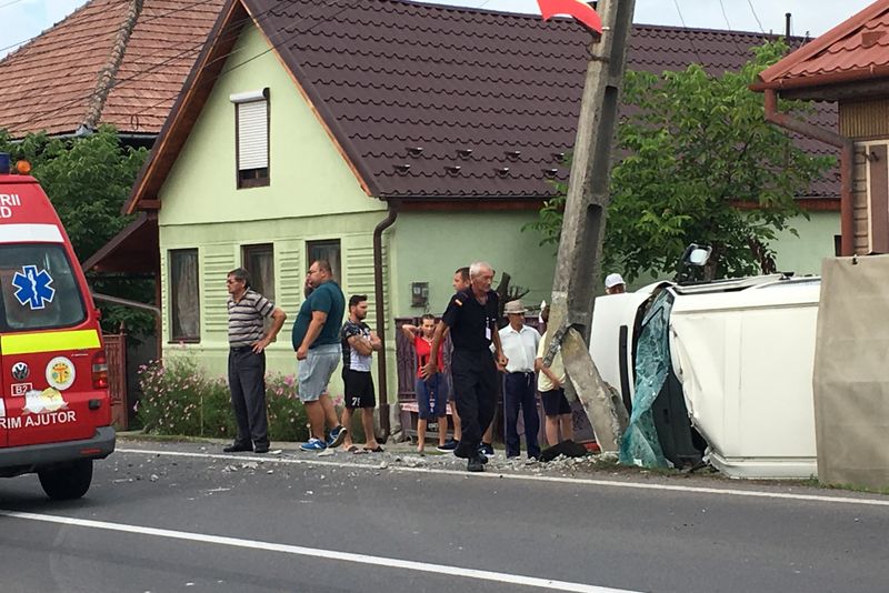 În urmă cu câteva minute, pe raza satului Morăreni a avut loc un accident provocat de o autoutilitară, pe direcția de mers spre Reghin.Mașina a tăiat o curbă și a intrat într-un stâlp de electricitate, după care s-a răsturnat în șanț.Șoferului i se acordă primul ajutor din partea echipajului SMURD ajuns la fața locului și pare în afara oricărui pericol.SVSU Rușii Munți intervine pentru ancorarea stâlpului de electricitate, care este în pericol să se prăbușească peste o casă.