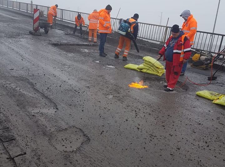 Direcția Regională de Drumuri și Poduri Brașov susține că “lucrările sunt executate după ce firma care se ocupa de reabilitarea podului a dat dovadă de neseriozitate, nu a terminat lucrările la timp (termenul finalizare fiind sfârșitul lunii septembrie 2018) și astfel am intrat în iarnă cu rampele pasajului într-o stare necorespunzătoare. Pentru reparații vom folosi mixtura stocabilă (asfalt la rece) dar și utilajul care funcționează pe bază de încălzire cu infraroșu, acestea fiind singurele tehnologii care se pot aplica în sezonul rece. Menționam că lucrările au caracter provizoriu, cele permanente urmând să se execute în primăvara. Toate cheltuielile intervenției de acum vor fi imputate constructorului, pe lângă penalizările pentru că nu a terminat lucrarea la timp.”