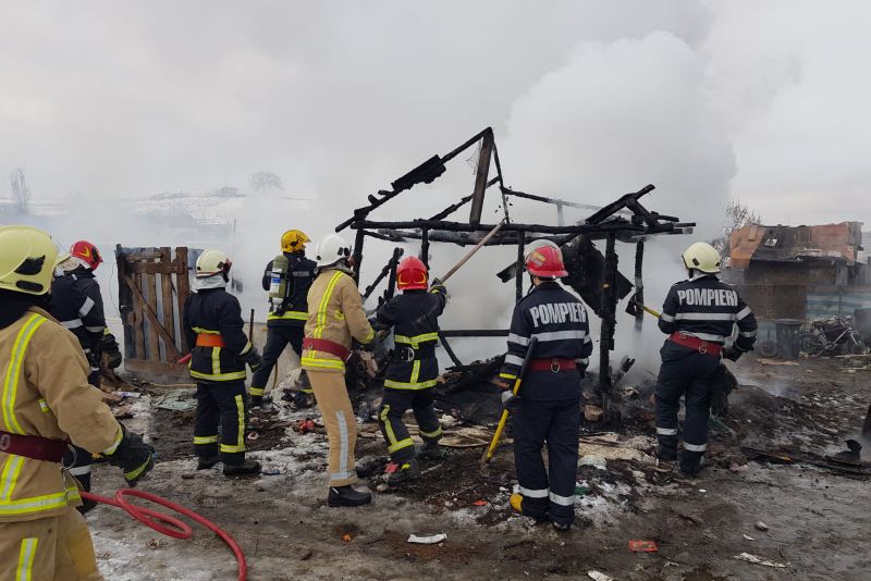 A ars o casă improvizată pe o suprafață de aproximativ 20mp, nefiind înregistrate victime. Incendiul a fost localizat, fără pericol de propagare.
