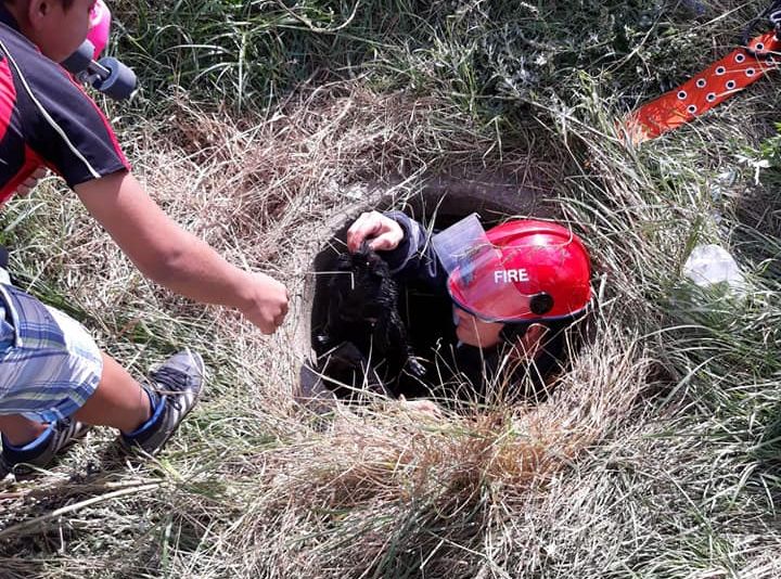 FOTO/INTERVENȚIE CU SUFLET: Trei căței aruncați într-un canal, salvați de pompierii mureșeni