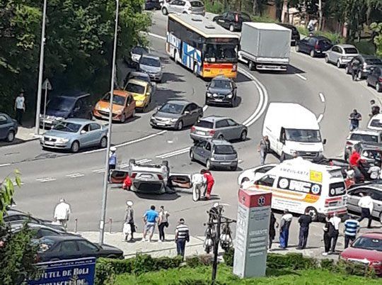 O mașină s-a răsturnat, chiar în fața intrării spre UPU SMURD, fiind nevoie de o macara pentru deblocarea șoselei.La fața locului au intervenit echipaje ale ISU Mureș, Poliției și serviciilor medicale de urgență.