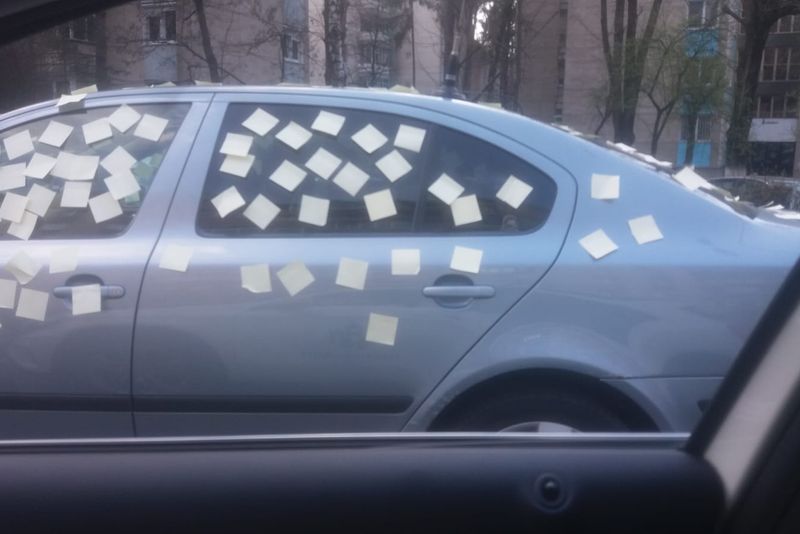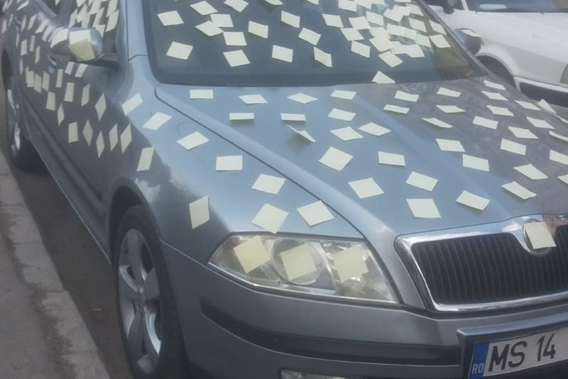 Privirile conducătorilor auto și ale trecătorilor sunt atrase, în această după amiază, de imaginea unei mașini parcată în cartierul Tudor Vladimirescu, care este acoperită cu bilețele autocolante.Deși, la prima vedere, este vorba despre semnalarea unei parcări neregulamentare, se pare că gestul are legătură cu ziua de 1 aprilie, prietenii proprietarului mașinii făcându-i acestuia o "surpriză", dedicată zilei păcălelilor.
