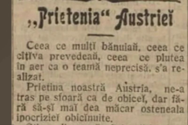 Și atunci, ca și acum, Austria a susținut România doar pe hârtie în baza tratatelor, însă cu primele ocazii, Viena a întors spatele Bucureștiului, o spun și istoricii.