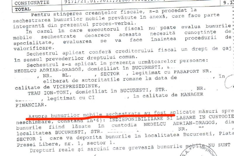 Potrivit documentelor din instanță, bunurile sechestrate de ANAF-ul condus de Sorin Blejnar, omul cheie al statului paralel, la REALITATEA MEDIA SA au fost imobilizate și lăsate în custodie fix la adresa unde astăzi funcționează ROMÂNIA TV, post de televiziune controlat de Sebastian Ghiță și au fost lăsate în mâinile lor, fapt cercetat acum într-un dosar penal cu numărul 29937/3/2022, aflat pe rolul Trribunalului București.