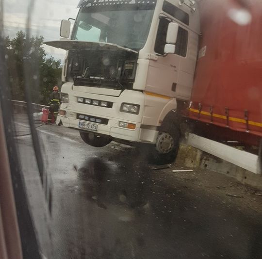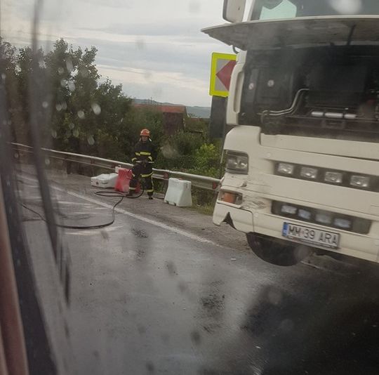Din primele cercetări, se pare ca un bărbat de 50 de ani, din Arad, în timp ce conducea un ansamblu de vehicule, pe fondul vitezei neadaptate la condițiile de carosabil umed, pe timp de ploaie abundentă, a pierdut controlul asupra direcției de deplasare și a intrat în coliziune cu parapetul metalic de pe sensul său de mers, blocând partea carosabilă pe relația Sighișoara - Târgu Mureș.Conducătorul auto a fost testat cu aparatul etilotest, rezultatul fiind negativ.Evenimentul rutier nu s-a soldat cu victime, doar cu pagube materiale.
