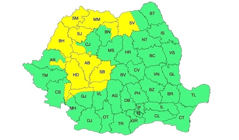 Administrația Națională de Meteorologie a emis o atenționare meteo cod galben de vijelii și furtuni cu grindină, valabilă pentru mai multe județe și nordul și nord-vestul țării. Un val de frig și ploi va cuprinde întreaga țară.