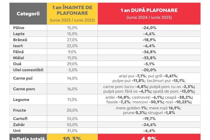 "Renunţarea la plafonarea adaosului comercial în cazul alimentelor de bază, care ar urma să fie ridicată de la 1 octombrie. Voi cere urgent clarificări partenerilor de guvernare, pentru că este o decizie pe care nu am discutat-o în Coaliţie şi cu care PSD nu poate fi de acord! Specialiştii spun că ridicarea plafonării ar creşte imediat inflaţia cu încă 2-3 puncte procentuale, consumul ar scădea, iar puterea de cumpărare a românilor se va prăbuşi!”, a declarat Grindeanu, într-o postare pe Facebook.
