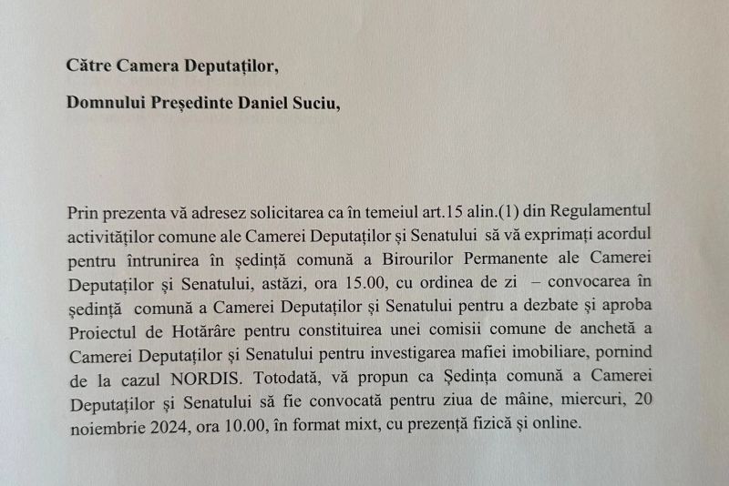 „Solicit președintelui Camerei Deputaților convocarea de urgență a ședinței comune pentru aprobarea comisiei de anchetă privind mafia imobiliară – cazul NORDIS. Adevărul trebuie să iasă la lumină!”, a transmis Nicolae Ciucă.